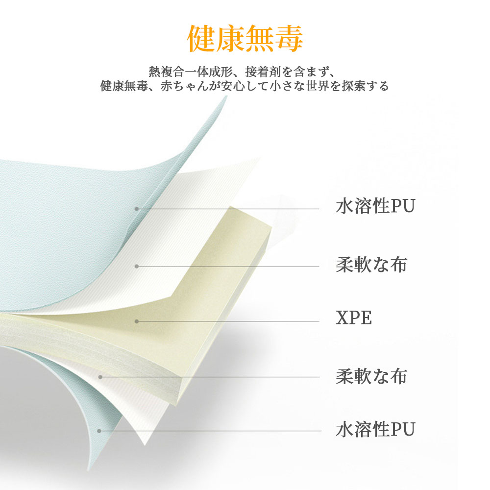 子供にやさしいEPE無毒無臭素材を使っているプレイマット。ホルムアルデヒド、フタル酸、BPA、または鉛等が含まれていない、安全なプレイマットです。