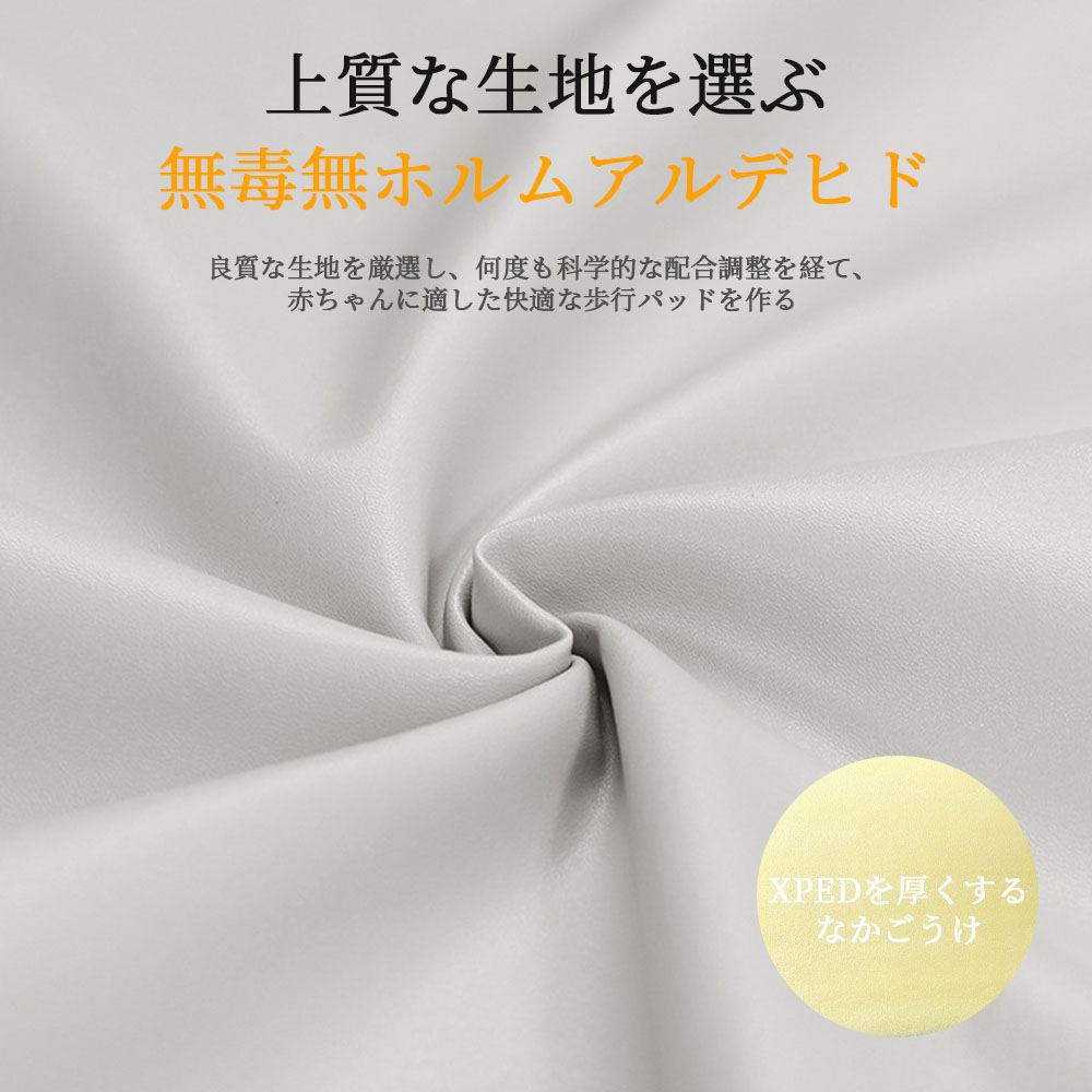 マット内部はクッション性のあるEPE素材でできており、4cmの厚みがあるので、よちよち歩きの赤ちゃんが転んでも安心。また、柔らかいだけでなく適度な硬さもあるので、沈み込みすぎず赤ちゃんの歩行の妨げとなりません。