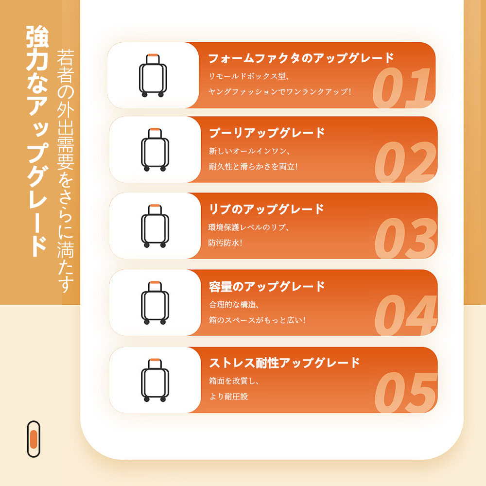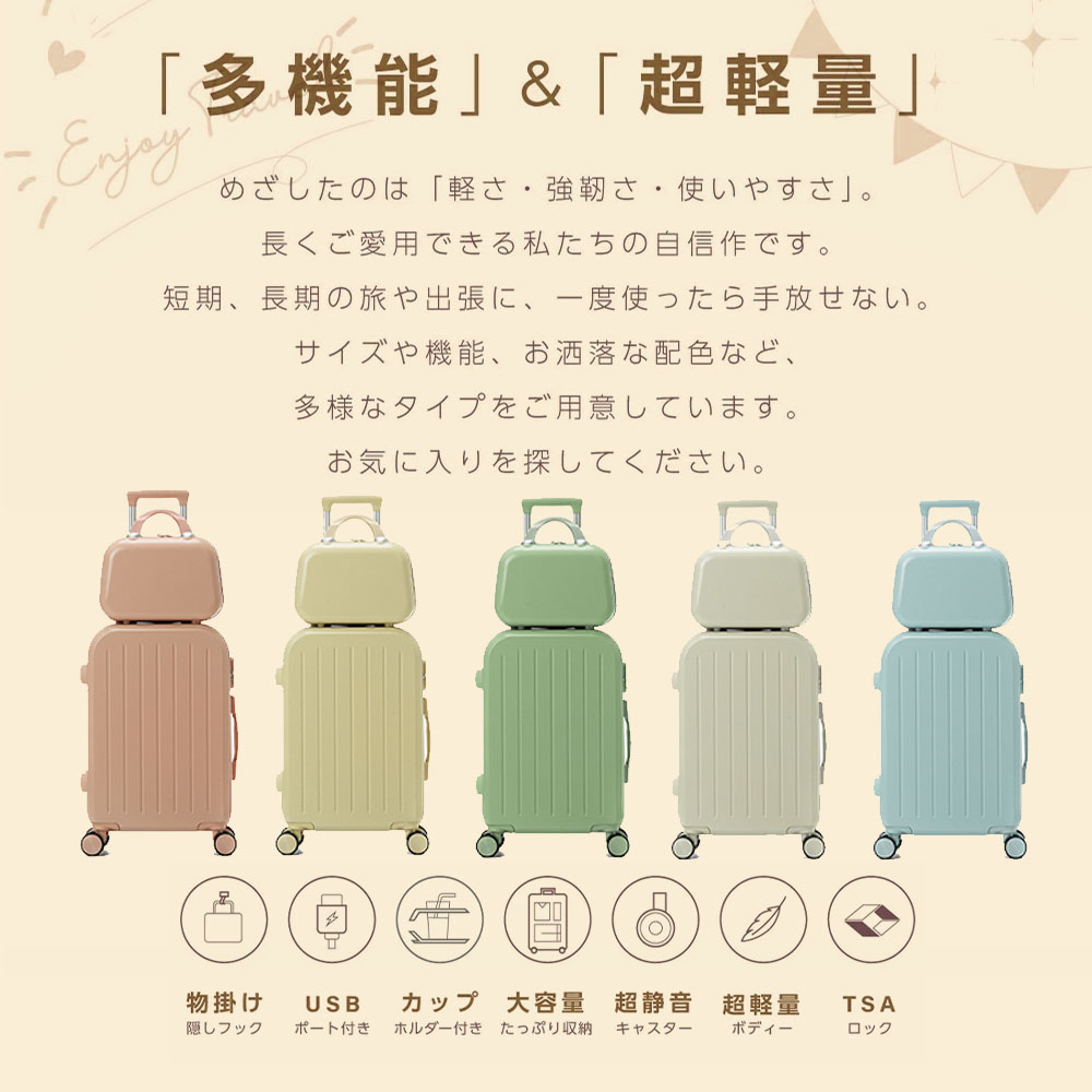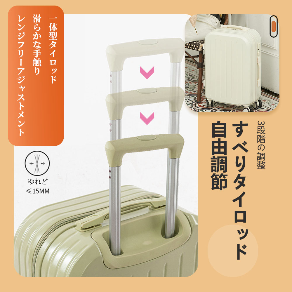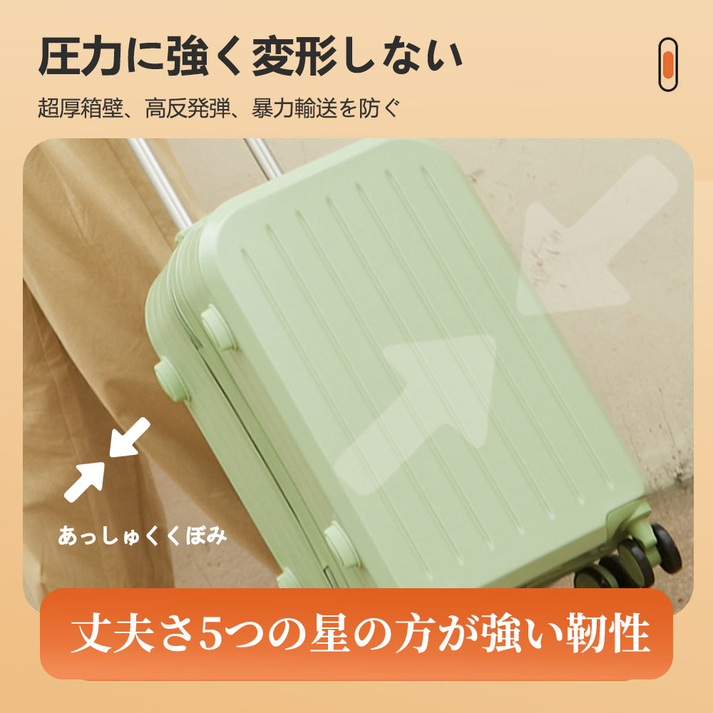 「ABS+PC」ABS樹脂とポリカーボネートでの混合素材を採用し、軽量かつ頑丈で耐衝撃性を実現しています。機内持ち込みときにほかの人に乱暴に扱われ破損する恐れがないです。